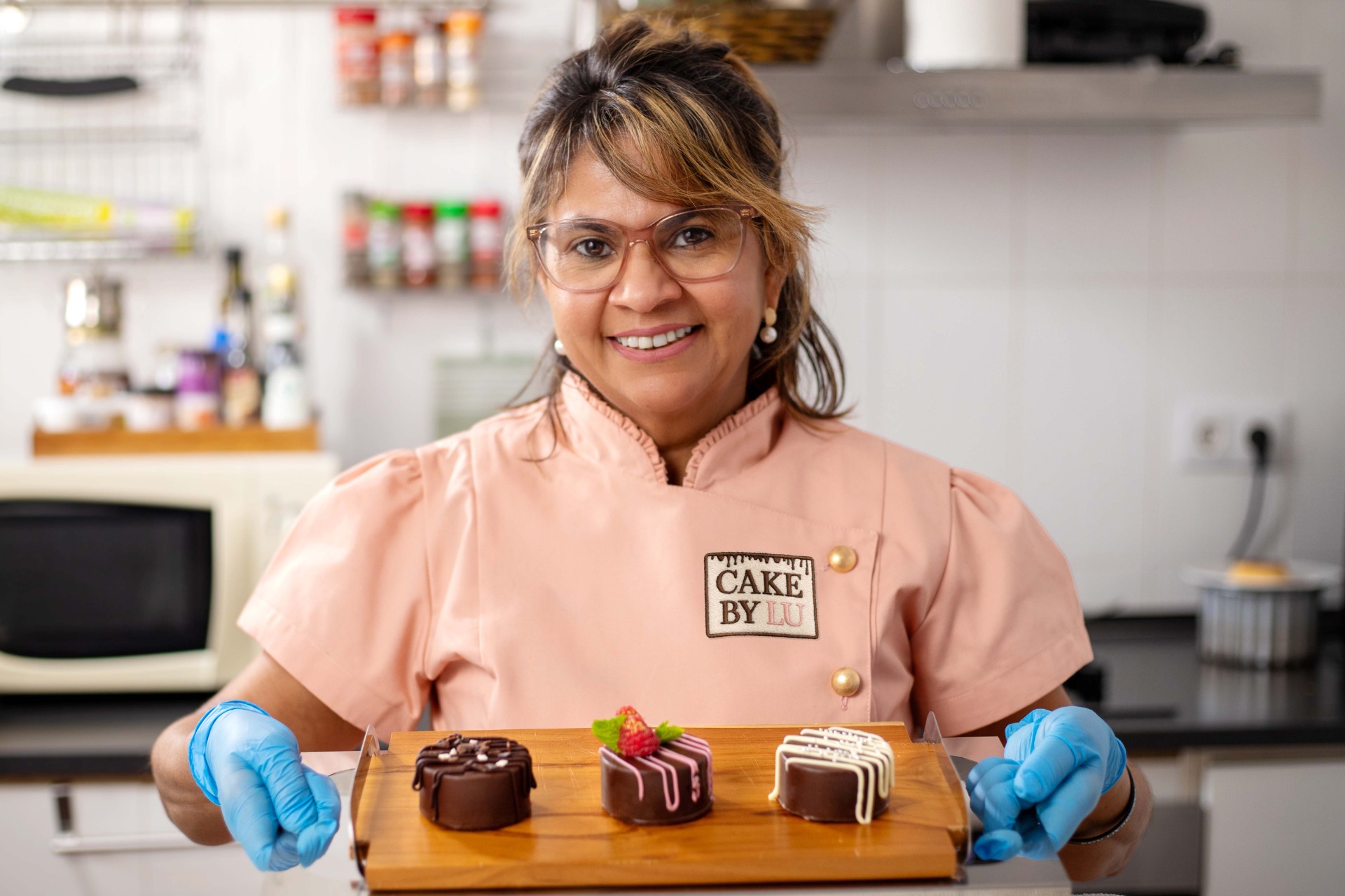 Confeiteira brasileira radicada em Espinho, é especialista em doces personalizados. Formada em Confeitaria e na Academia de Cake Designer, cria sabores autênticos com técnicas do Brasil e de Portugal. Elegância e afeto em cada detalhe.